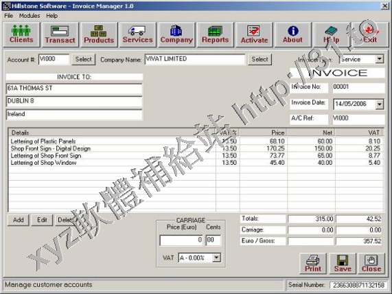 • Hillstone Invoice Manager v2.1.03 英文正式版(賬戶管理軟體)