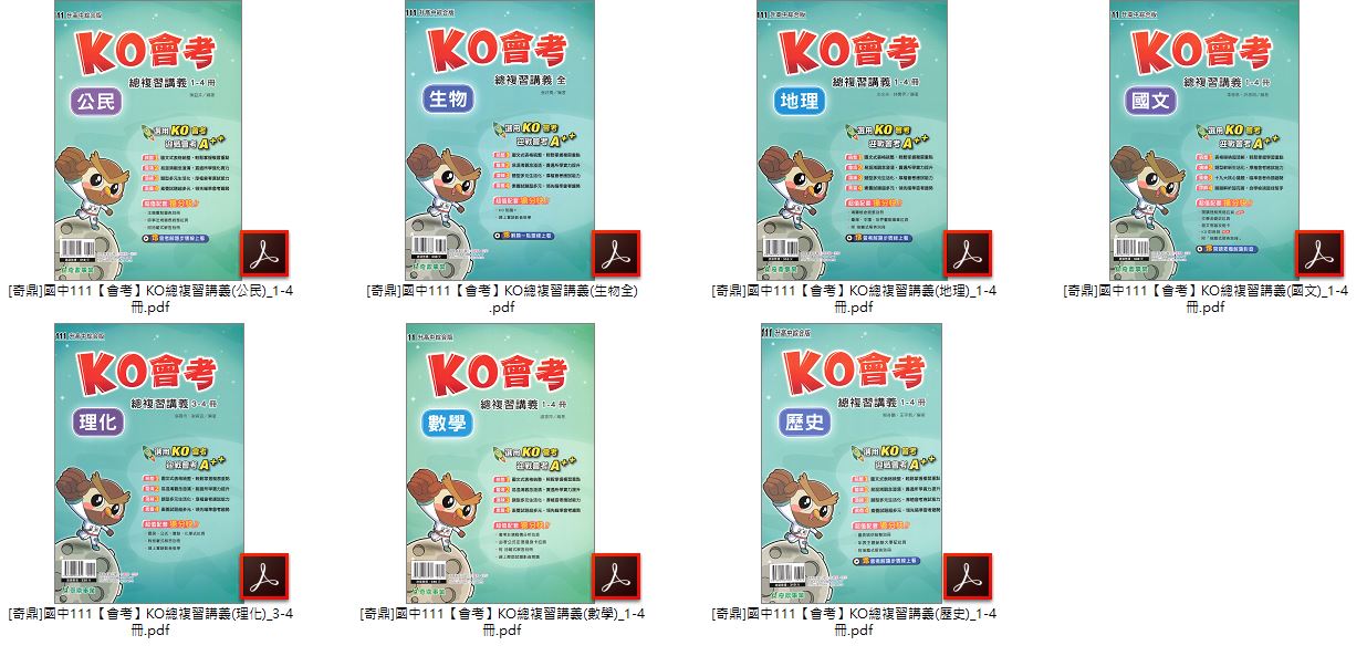 • 110年國中會考 奇鼎 KO會考 總複習講義 全科目 講義光碟