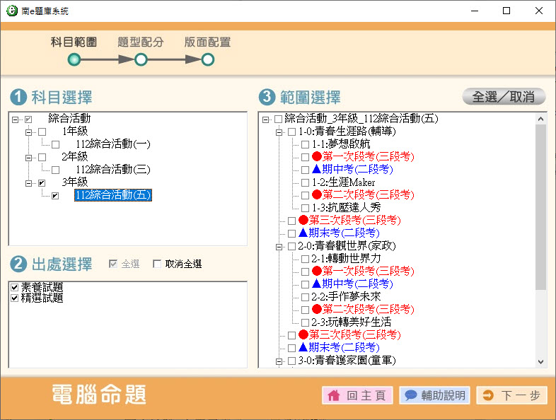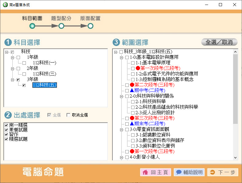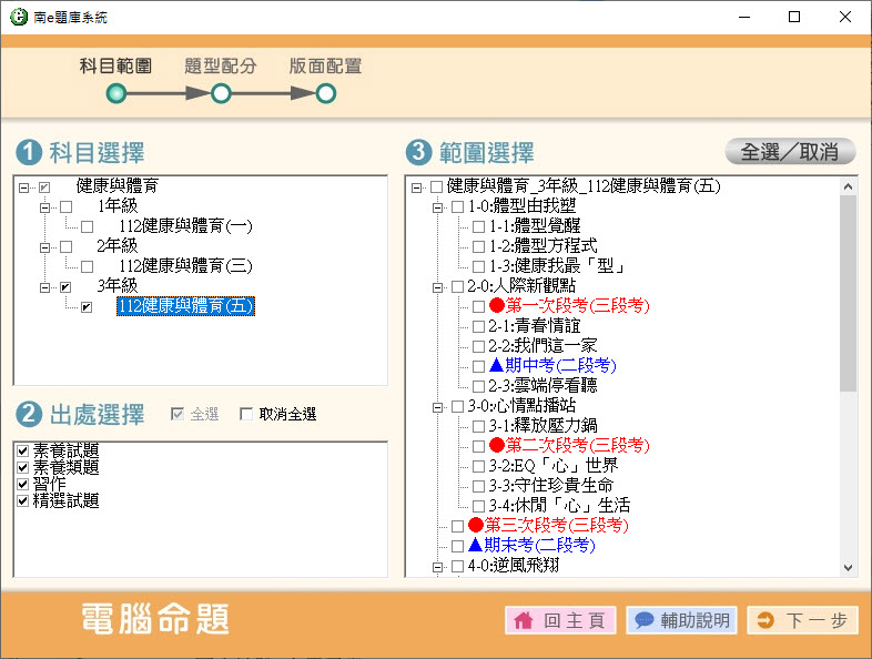 112學年上學期 國中命題光碟 南一版 1-3年級 健體、綜合、科技(108課綱) 題庫光碟