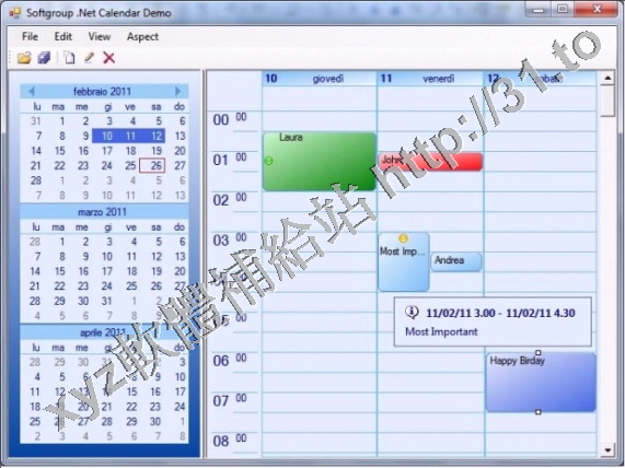Softgroup Components Net Calendar Control v3.0.4115 英文正式版(日曆控件軟體)